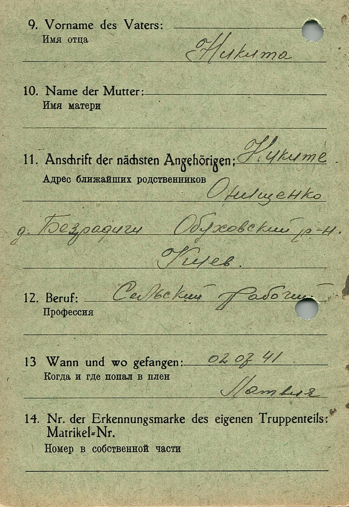 Военнопленные, трофейные карточки. Киевская обл.