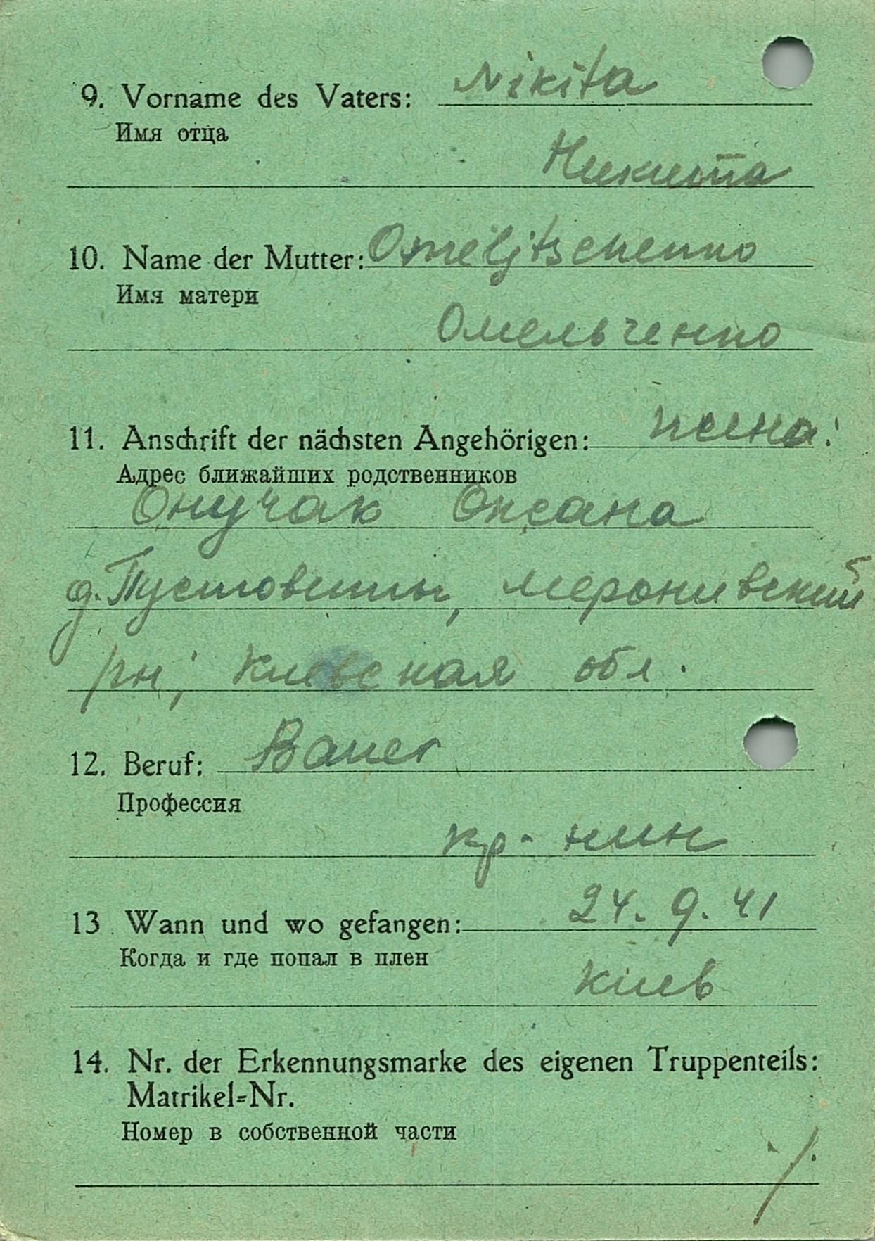 Военнопленные, трофейные карточки. Киевская обл.