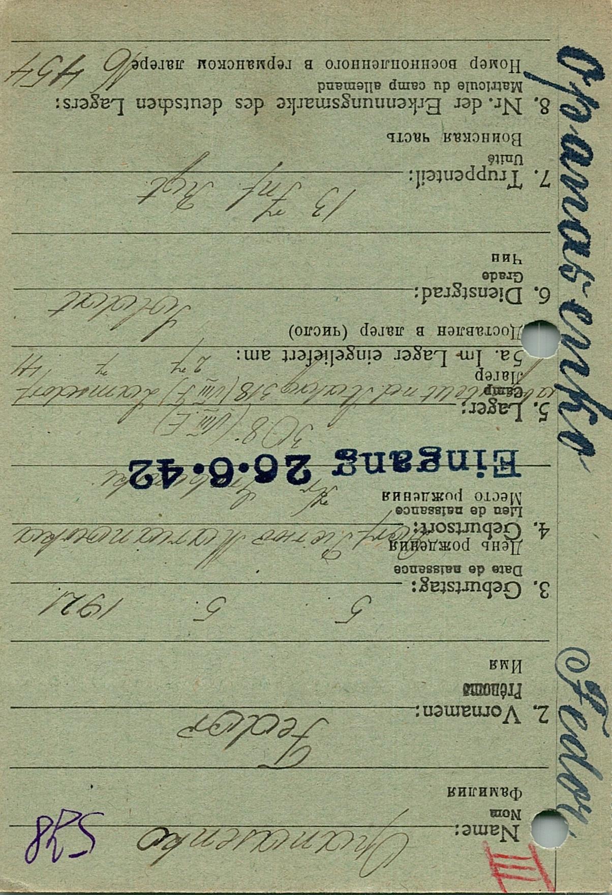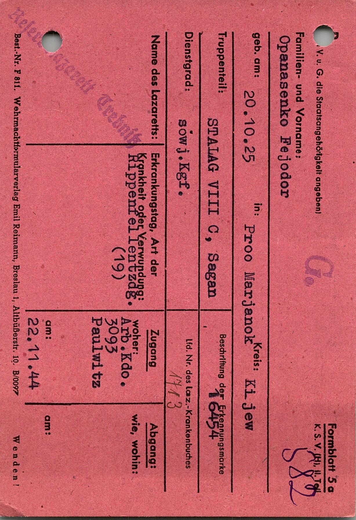 Военнопленные, трофейные карточки. Киевская обл.