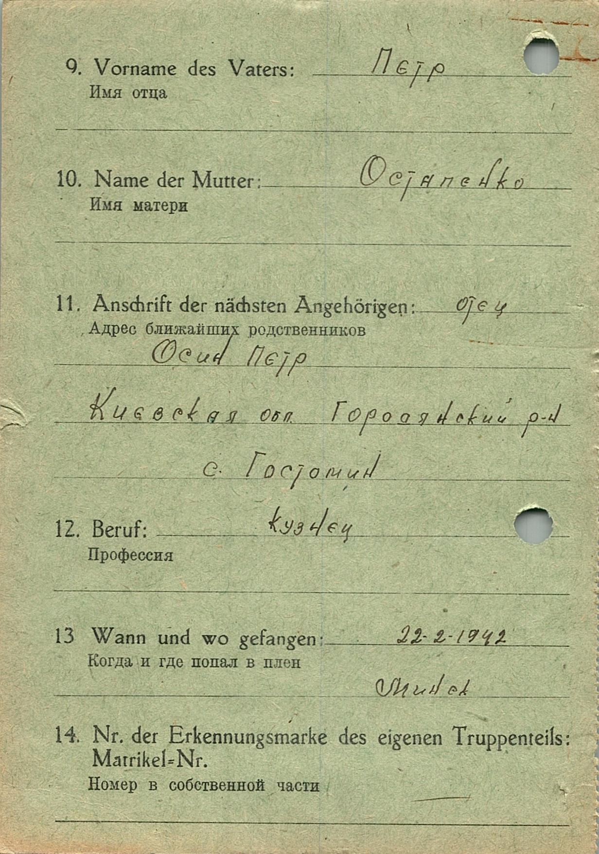 Военнопленные, трофейные карточки. Киевская обл.
