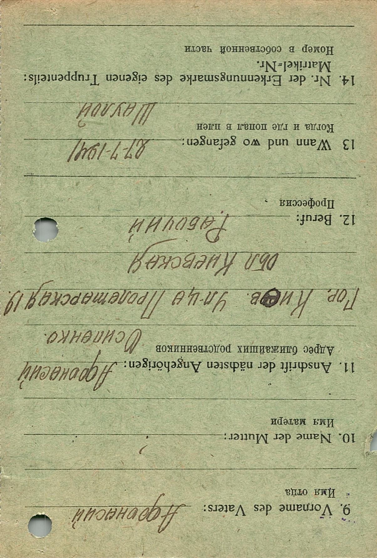 Военнопленные, трофейные карточки. Киевская обл.