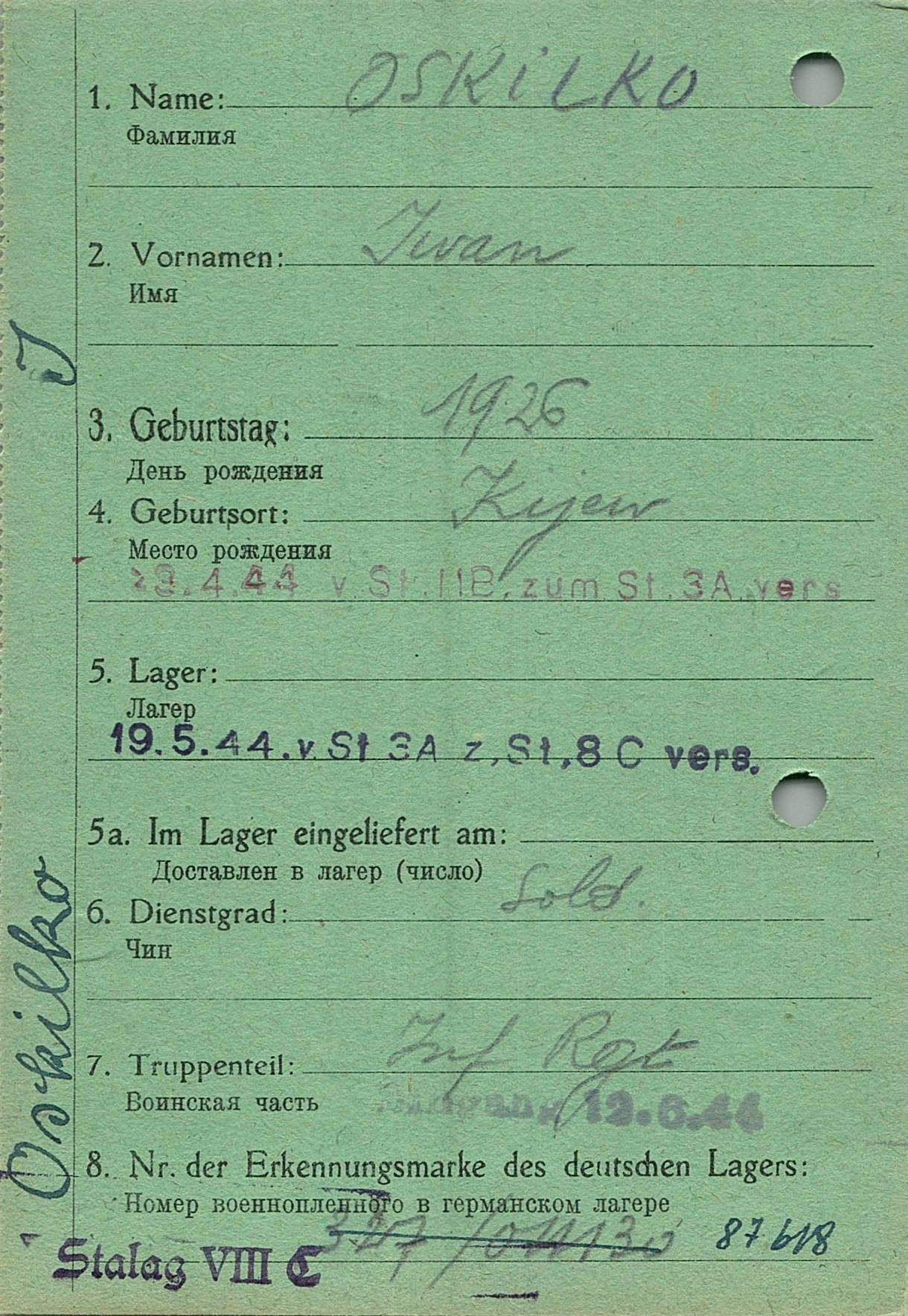 Военнопленные, трофейные карточки. Киевская обл.