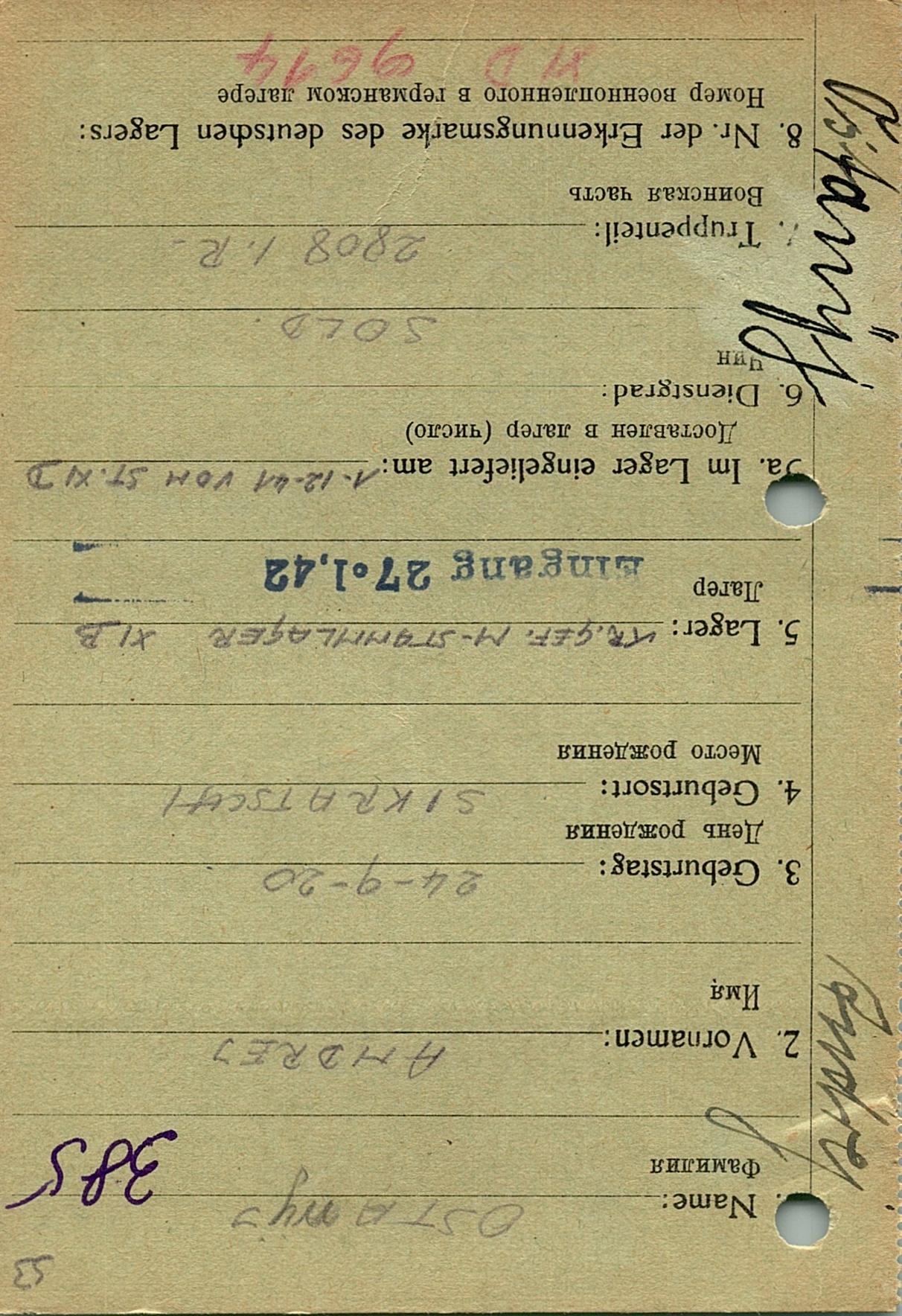 Военнопленные, трофейные карточки. Киевская обл.