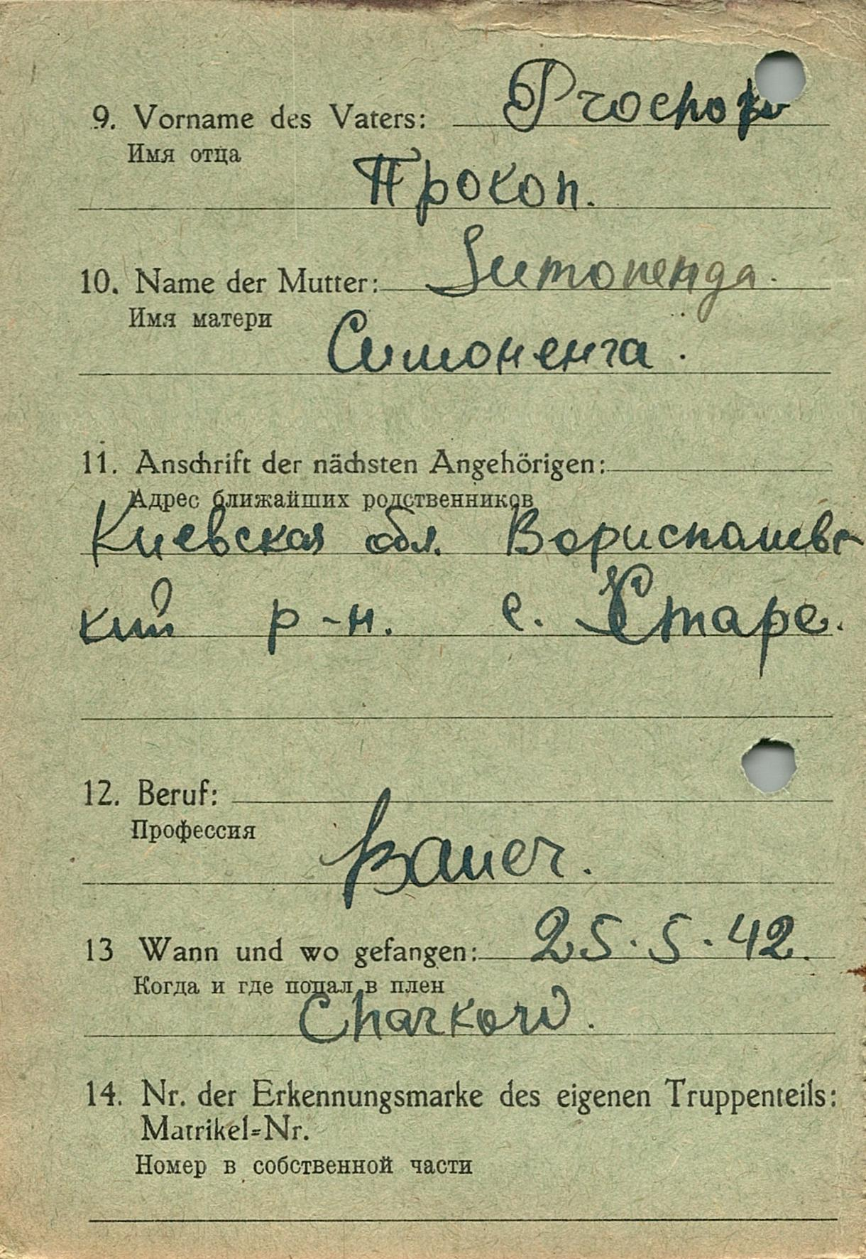 Военнопленные, трофейные карточки. Киевская обл.