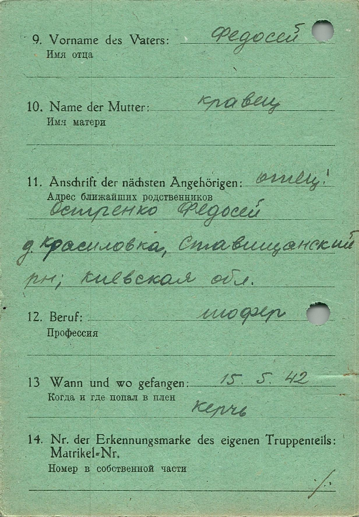 Военнопленные, трофейные карточки. Киевская обл.