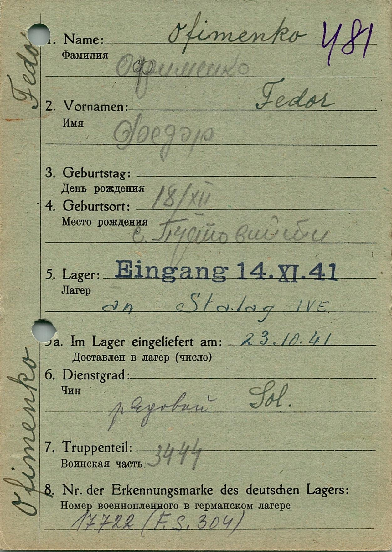 Военнопленные, трофейные карточки. Киевская обл.