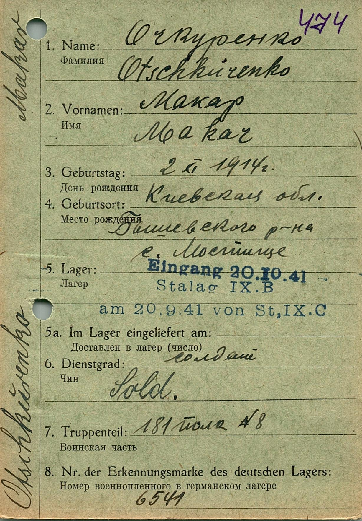 Военнопленные, трофейные карточки. Киевская обл.
