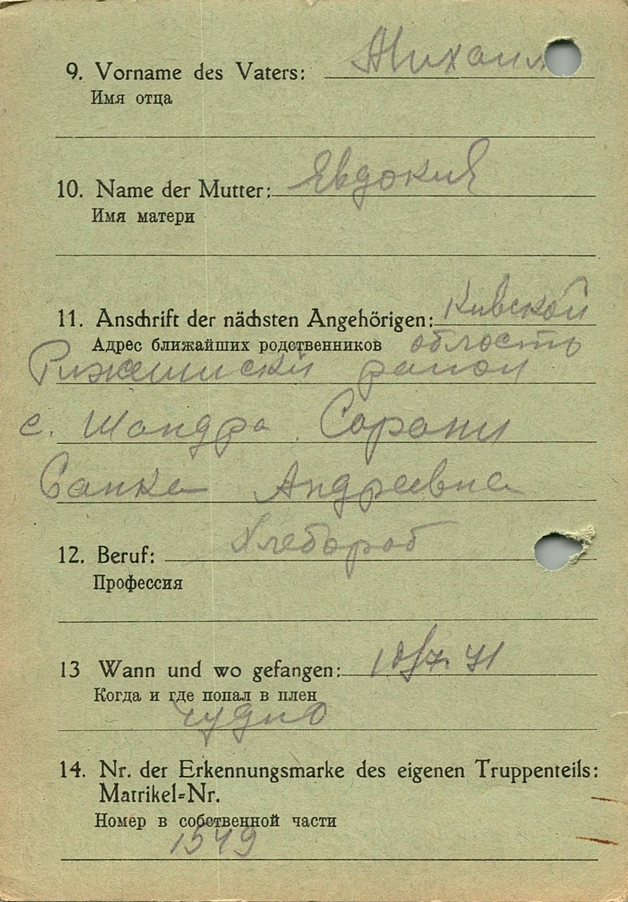 Военнопленные, трофейные карточки. Киевская обл.