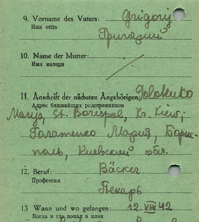 Военнопленные, трофейные карточки. Киевская обл.