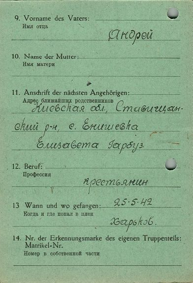 Военнопленные, трофейные карточки. Киевская обл.