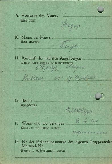 Военнопленные, трофейные карточки. Киевская обл.