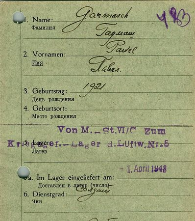 Военнопленные, трофейные карточки. Киевская обл.