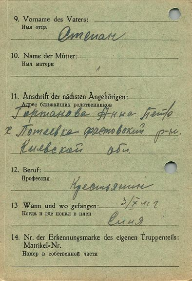 Военнопленные, трофейные карточки. Киевская обл.