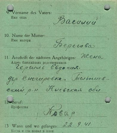 Военнопленные, трофейные карточки. Киевская обл.
