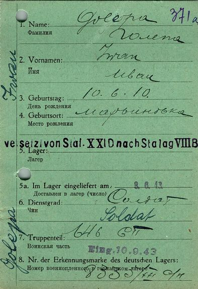 Военнопленные, трофейные карточки. Киевская обл.