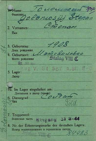 Военнопленные, трофейные карточки. Киевская обл.