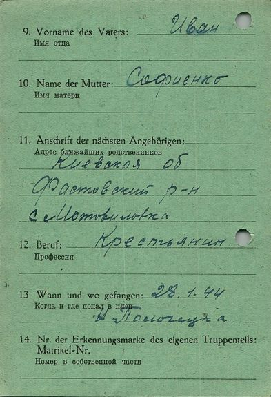 Военнопленные, трофейные карточки. Киевская обл.