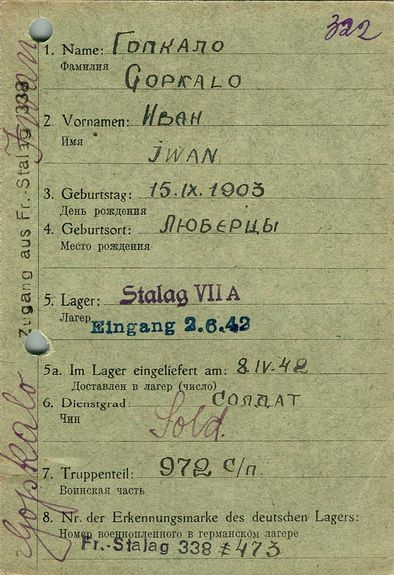 Военнопленные, трофейные карточки. Киевская обл.
