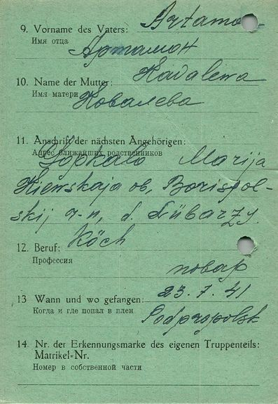 Военнопленные, трофейные карточки. Киевская обл.