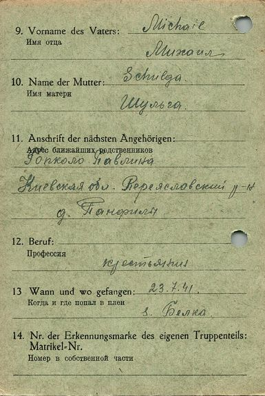 Военнопленные, трофейные карточки. Киевская обл.