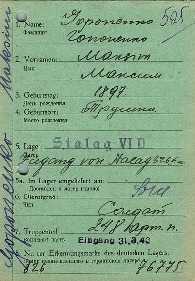 Военнопленные, трофейные карточки. Киевская обл.
