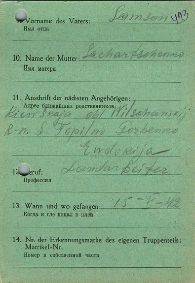 Военнопленные, трофейные карточки. Киевская обл.