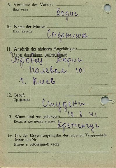Военнопленные, трофейные карточки. Киевская обл.
