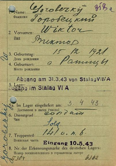 Военнопленные, трофейные карточки. Киевская обл.