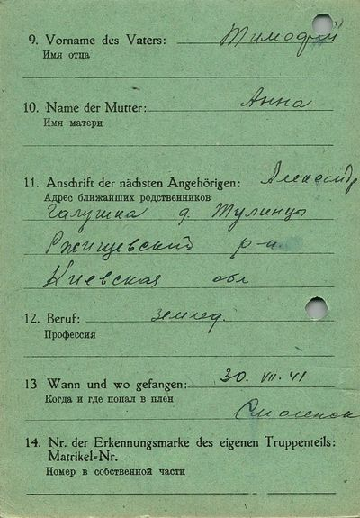 Военнопленные, трофейные карточки. Киевская обл.