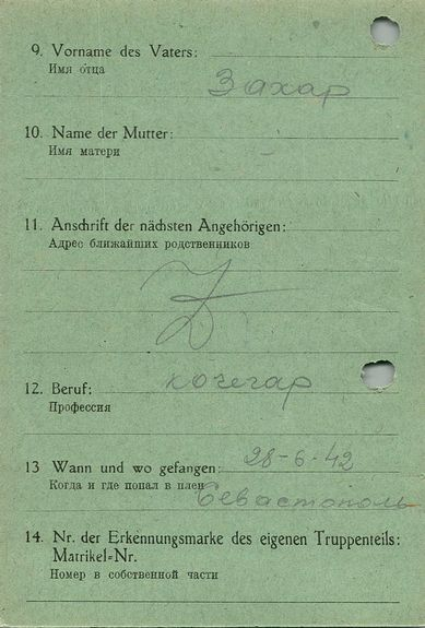 Военнопленные, трофейные карточки. Киевская обл.
