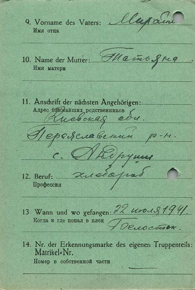 Военнопленные, трофейные карточки. Киевская обл.