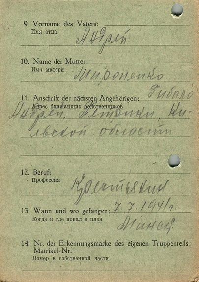 Военнопленные, трофейные карточки. Киевская обл.