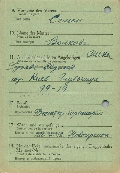 Военнопленные, трофейные карточки. Киевская обл.
