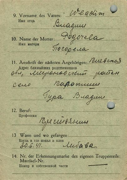 Военнопленные, трофейные карточки. Киевская обл.