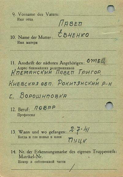 Военнопленные, трофейные карточки. Киевская обл.