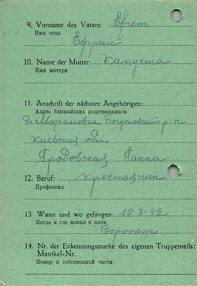 Военнопленные, трофейные карточки. Киевская обл.