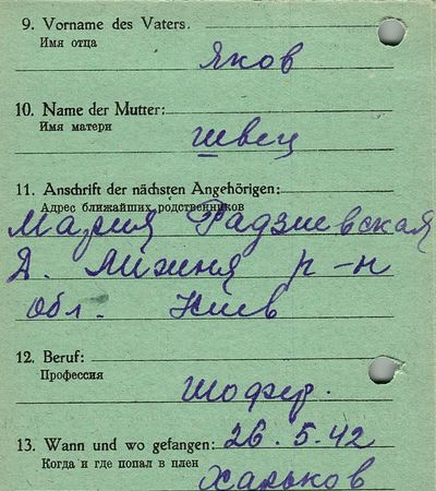 Военнопленные, трофейные карточки. Киевская обл.