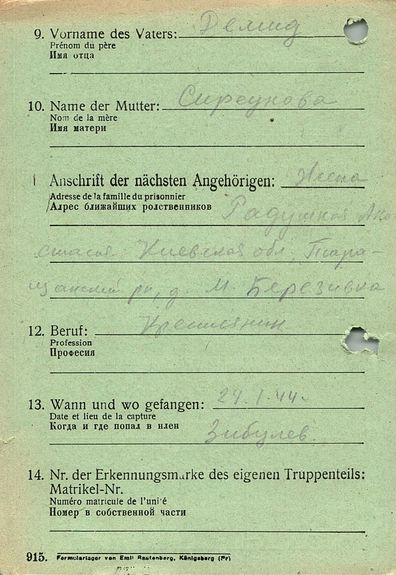 Военнопленные, трофейные карточки. Киевская обл.