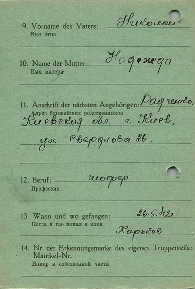 Военнопленные, трофейные карточки. Киевская обл.