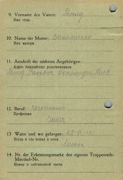 Военнопленные, трофейные карточки. Киевская обл.