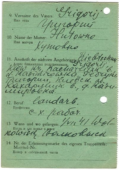 Военнопленные, трофейные карточки. Киевская обл.