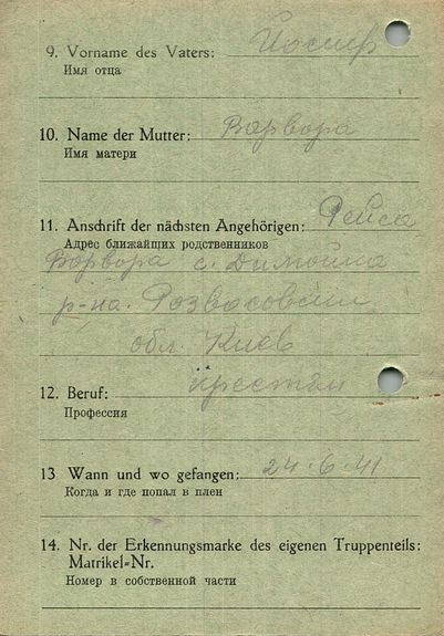 Военнопленные, трофейные карточки. Киевская обл.