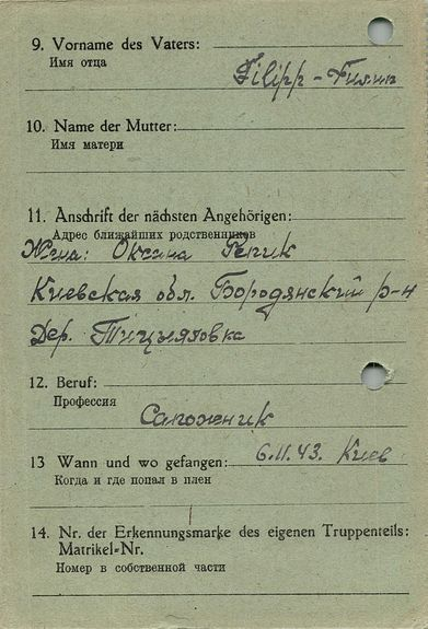 Военнопленные, трофейные карточки. Киевская обл.