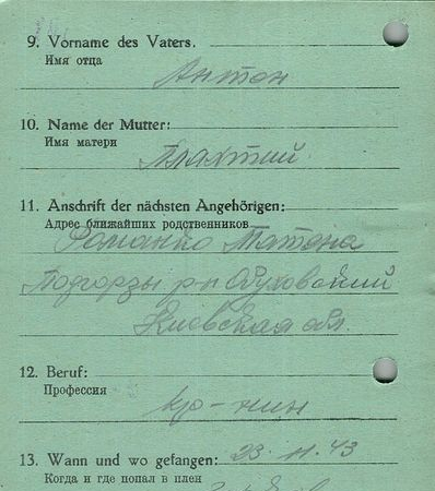 Военнопленные, трофейные карточки. Киевская обл.