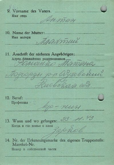 Военнопленные, трофейные карточки. Киевская обл.