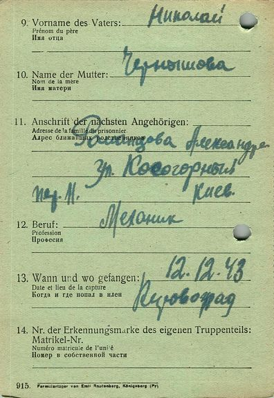 Военнопленные, трофейные карточки. Киевская обл.