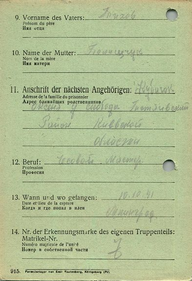Военнопленные, трофейные карточки. Киевская обл.
