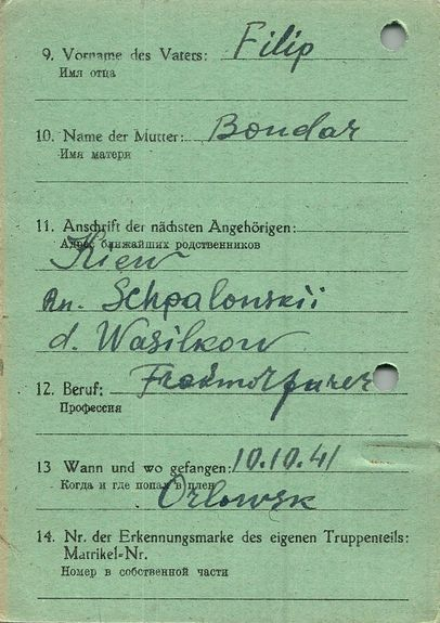 Военнопленные, трофейные карточки. Киевская обл.