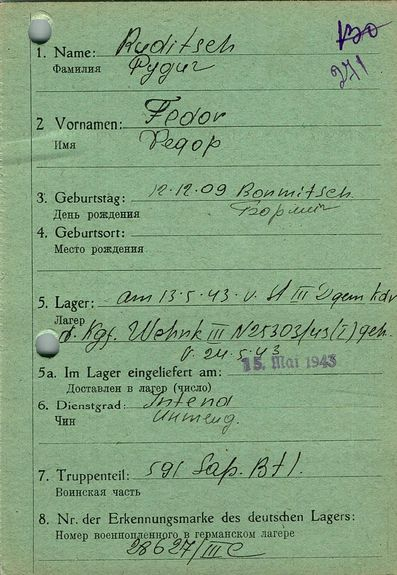 Военнопленные, трофейные карточки. Киевская обл.