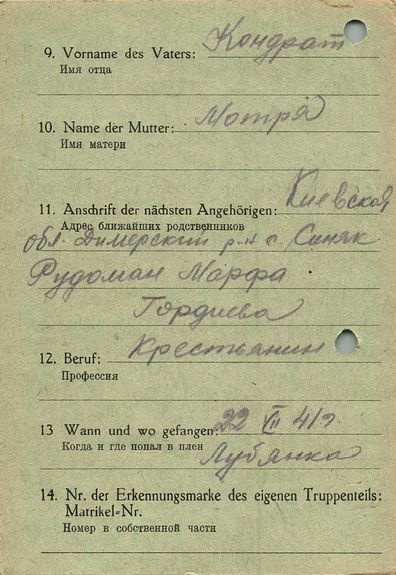 Военнопленные, трофейные карточки. Киевская обл.